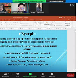 7 лютого 2022 року завідувач кафедри технології молока і молочних продуктів, доктор технічних наук, професор Галина Поліщук, як гарант освітньо-професійної програми «Технології зберігання, консервування і переробки молока» за спеціальністю 181 «Харчові технології» галузі знань 18 «Виробництво та технології» провела зустріч зі здобувачами другого магістерського рівня вищої освіти першого та другого років навчання, де були обговоренні основні положення ОПП та шляхи її удосконалення.